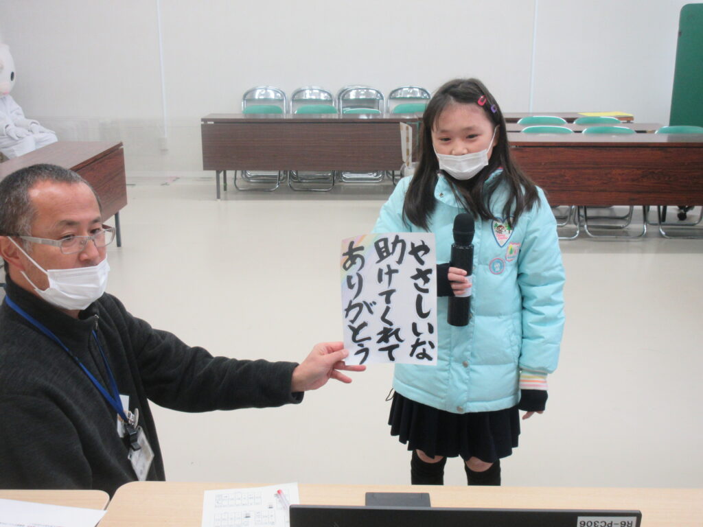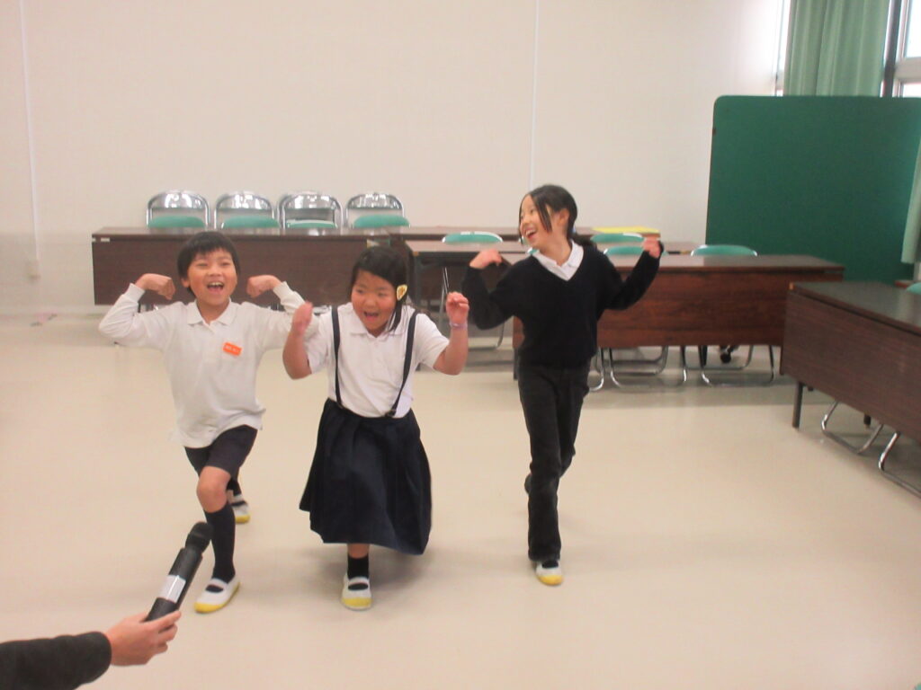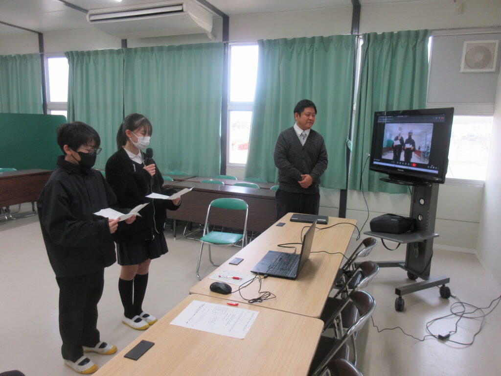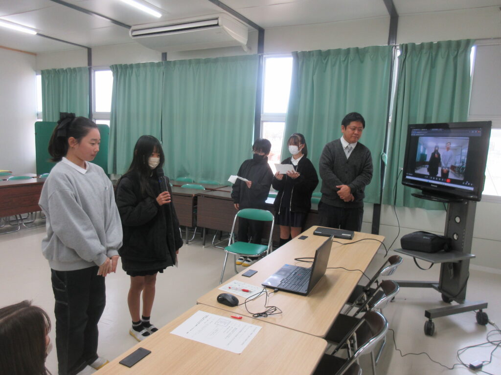 3年生は、学年で取り組んでいる「サンキューあいさつ運動」を発表しました。毎朝の「おはようございます」、昼間出会った時の「こんにちは」、帰る前の「さようなら」をはじめ、自分から明るく元気に挨拶する姿がよく見られる3年生なのですが、その効果をわかりやすく、楽しく寸劇を交えて画面に向かって発表できました。