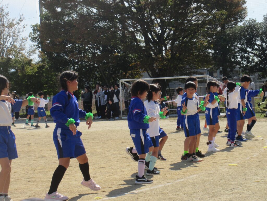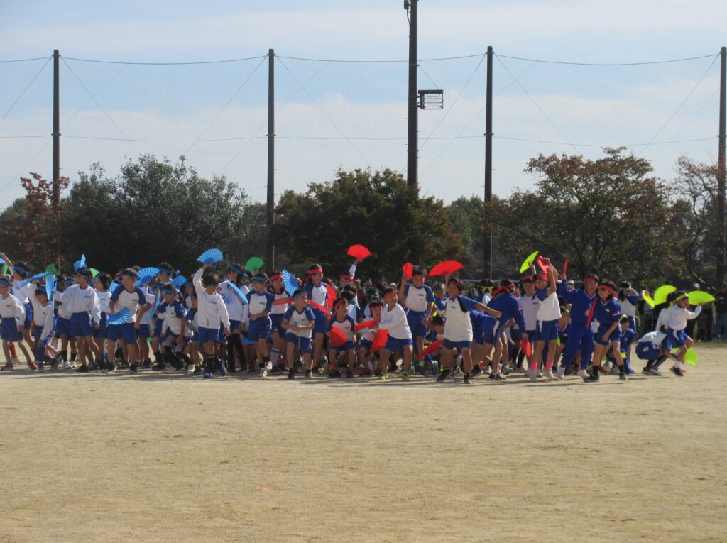 運動会の種目は、各学年とも徒競走(1,2年生)か全員リレー(3~6年生)と団体演技の2つです。