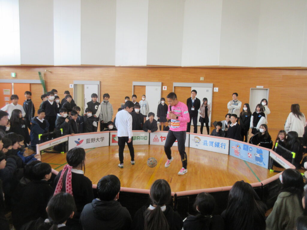 6年生の総合的な学習の時間の一環で、自分の将来について考える「夢授業」として、元Jリーガーで守山市出身の村田和哉さんにお越しいただきました。